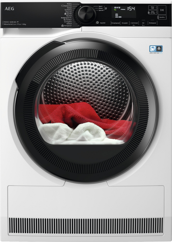 Je stopt je katoenen en synthetische was tegelijk in de AEG TR968H4C AbsoluteCare Plus. De warmtepompdroger droogt je was gelijkmatig, waardoor je deze niet meer sorteert. Ook droog je veilig je donsjas of dekbed dankzij de 3D sensor. Deze scant hoe vochtig je was aan de binnen- en buitenkant is en past hier het programma op aan. Je droogt zeer energiezuinig met energieklasse A+++. Hiermee bespaar je gemiddeld tot &euro: 1.150,- op je energierekening. Handig is dat je je droger via je smartphone aan een app koppelt. Met de functie SyncDry past de droger het programma aan op de laatste instellingen van je wasmachine. Zo geef je elke was de juiste behandeling en blijft deze langer mooi.