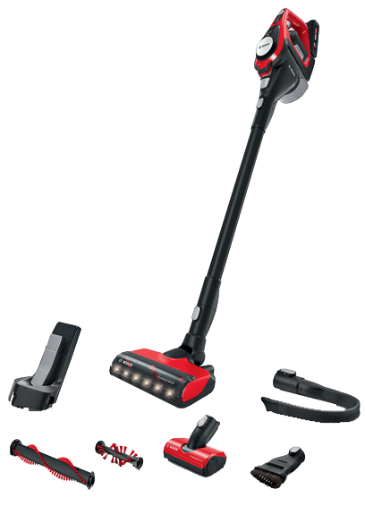 Je verwijdert gemakkelijk dierenharen van meubels en vloeren met de Bosch Unlimited ProAnimal BBS8214PET. Bij de stofzuiger ontvang je namelijk een ProAnimal borstelrol, die met de ronddraaiende borstels vezels en dierenharen van vloeren én uit tapijten verwijdert. Voor het verwijderen van dierenharen van stoelen en banken klik je de mini-turboborstel op de stofzuiger. De flexibele kierenzuigmond gebruik je om zelfs de moeilijkste plekjes, zoals onder de bank, stofvrij te maken. Op de laagste stand, de eco modus, stofzuig je tot 65 minuten. Hiermee bereik je alle verdiepingen van je huis. Je bergt de steelstofzuiger na gebruik netjes op in de wandhouder. In de houder laadt de stofzuiger ook direct op.