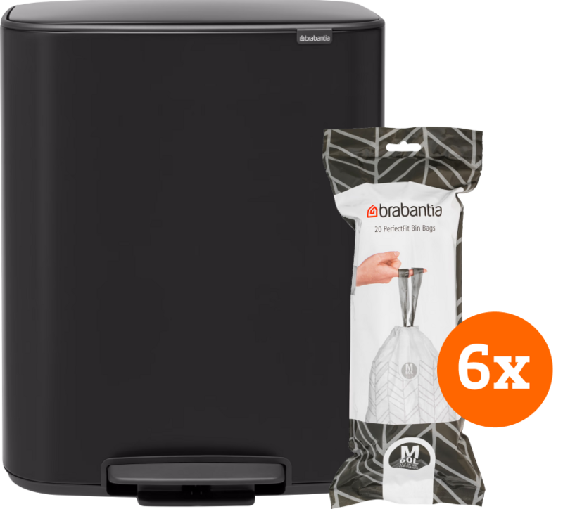 Brabantia Bo Pedal Bin 60 Liter Matt Black + Vuilniszakken (120 stuks)