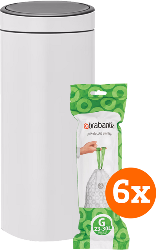 Brabantia Touch Bin 30 Liter White + Vuilniszakken (120 stuks)