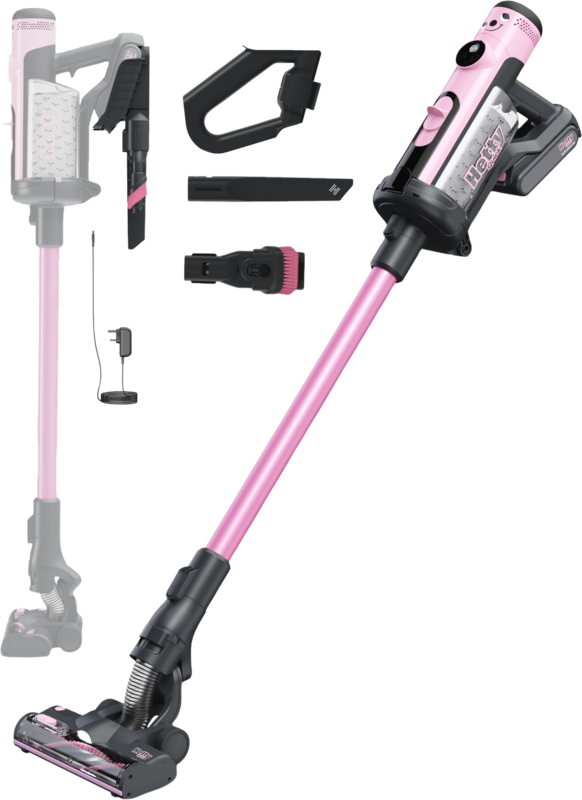 Met de Numatic Hetty Quick HTY100P roze stofzuig je grondig je tapijt en vloerkleden. De ronddraaiende borstel met harde haren in de combizuigmond zijn handig voor het verwijderen van dierenharen. Je gebruikt de steelstofzuiger ook als kruimelzuiger. Je klikt hier gemakkelijk de kierenzuigmond en het combinatie-accessoire op. Je stofzuigt je plinten en maakt je meubels stof- en kruimelvrij met de accessoires. De steelstofzuiger heeft een accuduur van één uur. Na 4 uur is hij weer volledig opgeladen en klaar voor zijn volgende rondje. De meegeleverde pods zijn de filters en de stofzuigerzak van de steelstofzuiger. Ze drukken het stof samen, waardoor het stofreservoir ruim blijf. Hierdoor leeg je het stofreservoir minder vaak dan de meeste steelstofzuigers. Er komt geen stof vrij tijdens het legen van de zak. De geurcapsule laat via de uitblaaslucht een frisse geur achter.