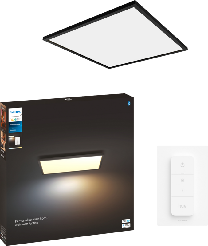 Philips Hue Aurelle White Ambiance groot vierkant zwart + dimmer