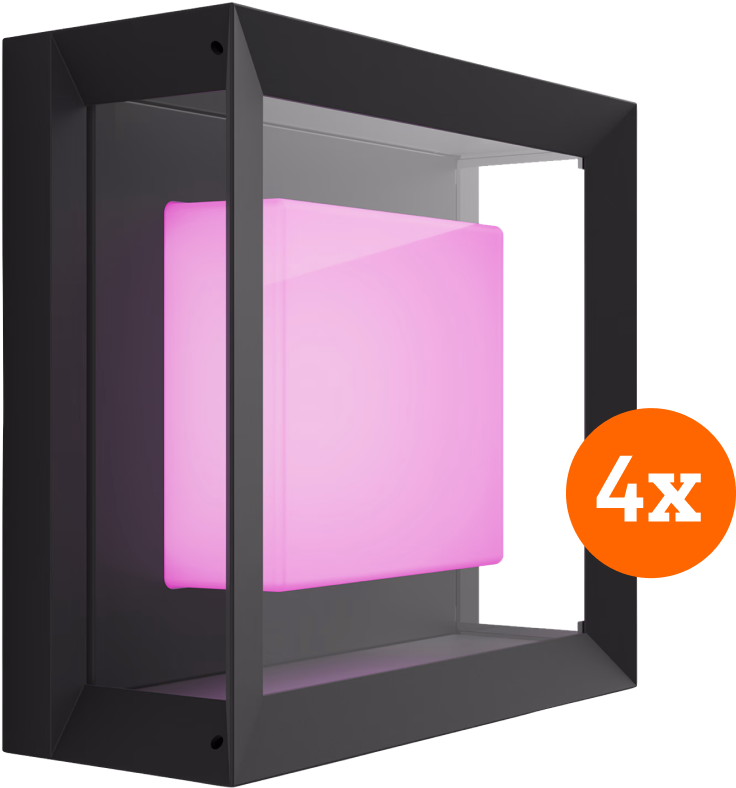 Met dit Philips Hue Econic buitenwandlamp 4-Pack breid je jouw Hue systeem uit met 4 lampen in de tuin. Koppel deze moderne wandlampen aan een Hue bridge en stel via de Hue app de perfecte sfeer in. Kies een warm licht als je wilt relaxen, of vrolijke kleurrijke verlichting tijdens een tuinfeest. De Hue Econic verlicht je tuin in alle kleuren van de regenboog. Je bestuurt de verlichting vanuit de Hue app. Daar stel je ook in dat de lampen automatisch inschakelen als je thuis komt. Of koppel de lampen aan zonsondergang, zodat je tuin altijd verlicht blijft.
