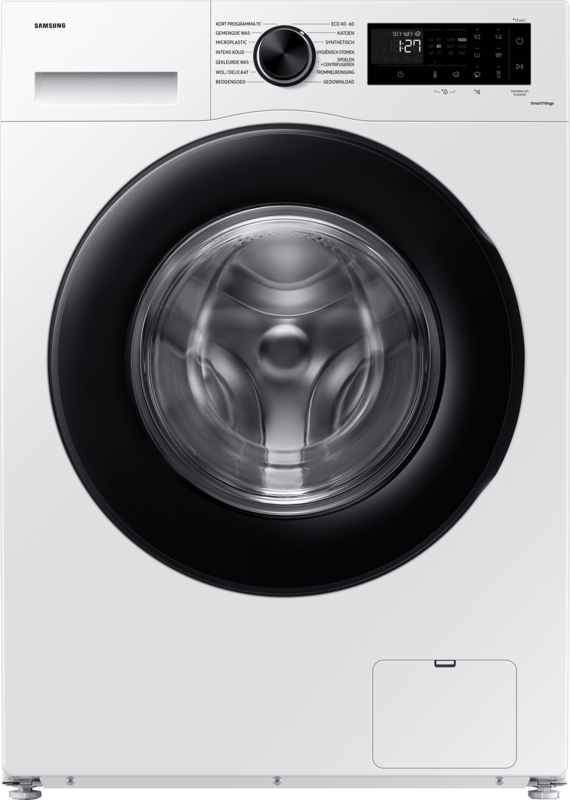 Je wast kleine en middelgrote ladingen was hygiënisch schoon met de 8 kilogram ruime Samsung WW80CGC04AAEEN (5000 serie). Voor het wassen van beddengoed en handdoeken gebruik je het hygiënisch stoomprogramma. Hiermee verwijder je allergenen en bacteriën. Handig, als je een allergie voor huisstofmijt of dierenharen hebt. Met energieklasse A was je energiezuinig schoon. Zo bespaar je tot &euro: 220,- over de levensduur. Je sluit deze Samsung wasmachine via SmartThings aan op het internet. Je bedient de wasmachine hierdoor ook op afstand met je telefoon. Ook download je via de SmartThings app extra programma’s voor bijvoorbeeld babykleding. Wil je extra op energie besparen? Dan verminder je het verbruik van je wasprogramma tot 70% met de AI Energie Mode in de app.