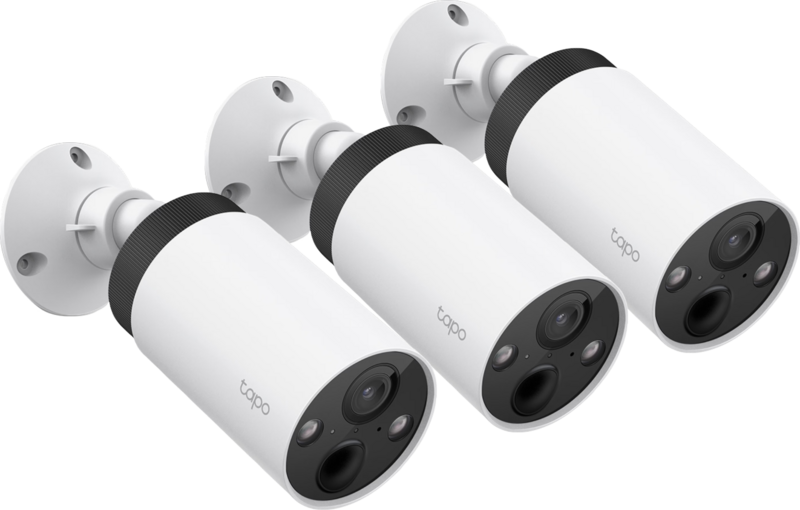 In dit IP camera pakket van TP-Link vind je 3 Tapo C420S2 camera’s. Met deze camera’s houd je gemakkelijk 3 binnen- of buitenruimtes in de gaten via de app. De camera’s hebben 2K beeldkwaliteit waardoor je ook bij inzoomen relatief scherp beeld behoudt. Ook ’s nachts houd je alles in de gaten dankzij de nachtvisie. De accu van deze camera’s gaat 180 dagen mee met zo’n 10 filmactiviteiten per dag. Instellingen, temperatuur en gebruik beïnvloeden de batterijduur. De slimme camera herkent mensen, dieren en auto’s. Zo gaat je alarm bijvoorbeeld niet af van een vogel die voorbij vliegt. Het alarm werkt met geluid, en een lichtsignaal. Je verbindt de camera via wifi, en beelden bewaar je op een SD kaart. Deze is niet meegeleverd. Voor een vast bedrag per maand kies je ook voor cloudopslag.